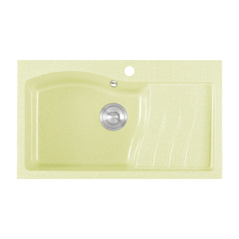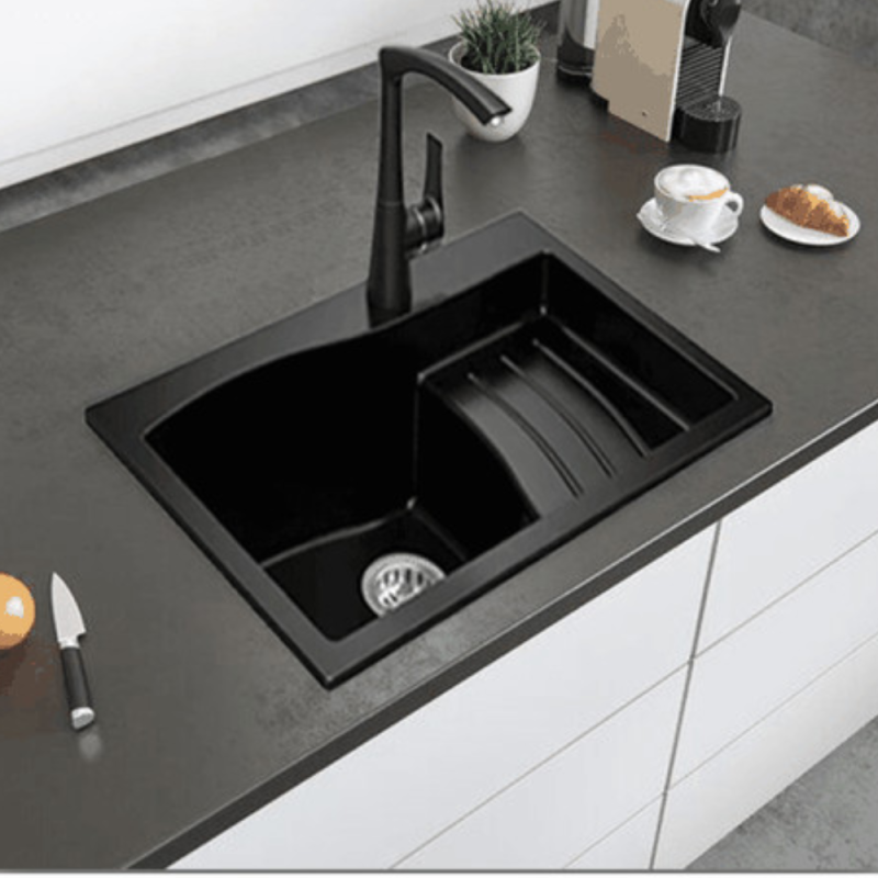 - Chậu rửa bát KAFF KF-8246SY sở hữu thiết kế hiện đại với kiểu dáng vuông vức và các đường nét bo cong tinh tế, phù hợp với nhiều không gian bếp từ truyền thống đến hiện đại. Chất liệu đá granite nguyên khối giúp chậu có độ bền cao, chịu được va đập mạnh, nhiệt độ cao và chống trầy xước trong quá trình sử dụng.