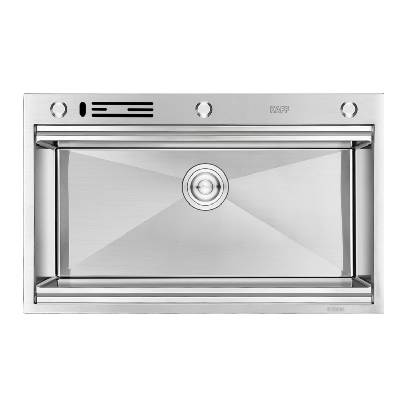 - Chậu rửa bát KAFF KF-HM7848A là lựa chọn lý tưởng cho không gian bếp hiện đại, nhờ thiết kế sang trọng và chất liệu inox cao cấp. Với kích thước 780 x 480 mm cùng độ sâu 240 mm, sản phẩm mang đến sự thoải mái tối đa khi sử dụng, đặc biệt phù hợp cho các gia đình có nhu cầu rửa nhiều vật dụng kích thước lớn.