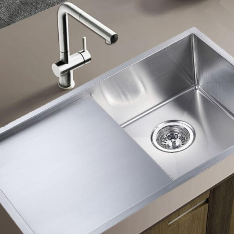 - Chậu được làm từ inox cao cấp dày 0.8 mm, có khả năng chống ăn mòn, chống bám bẩn và dễ lau chùi, đảm bảo độ bền đẹp theo thời gian. Độ sâu bồn lên tới 240 mm giúp hạn chế bắn nước hiệu quả, đặc biệt thích hợp với nhu cầu rửa nhiều xoong nồi, bát đĩa.