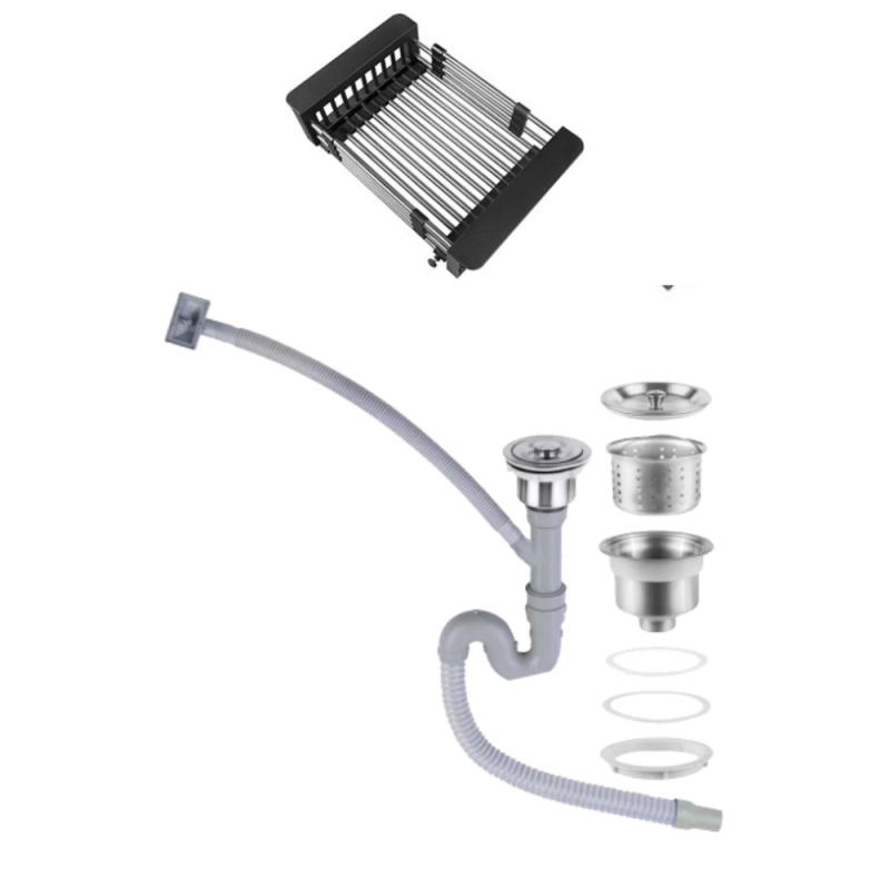- Bộ phụ kiện đầy đủ, bao gồm siphon, rổ kéo và bộ xả tràn, giúp lắp đặt dễ dàng và sử dụng tiện lợi ngay từ đầu.