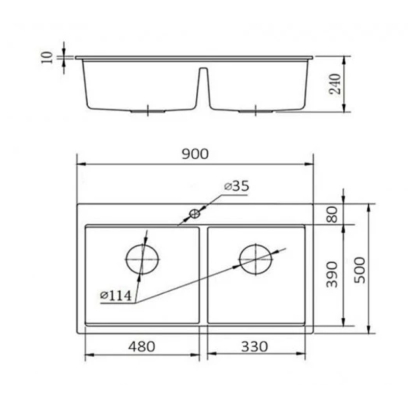 - Với kích thước lớn 900 x 500 mm và độ sâu bồn 210 mm, chậu mang lại không gian rửa rộng rãi, phù hợp cho cả nhu cầu nấu nướng thường xuyên. Thiết kế vuông vức, đường nét dứt khoát kết hợp cùng bề mặt nhẵn mịn tạo nên sự tinh tế, dễ vệ sinh và phù hợp với nhiều phong cách nội thất bếp.