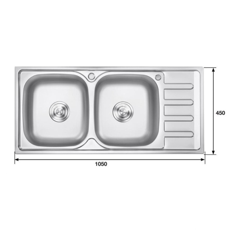 - Kích thước rộng rãi 1050 x 450 mm: Thiết kế kích thước lý tưởng cho các không gian bếp vừa và lớn, tạo sự thoải mái khi thao tác, kể cả khi rửa thực phẩm hay sơ chế nguyên liệu.