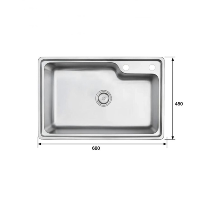 - Thiết kế hiện đại, tiết kiệm không gian: Với kích thước 680 x 450 mm, chậu phù hợp lắp đặt cho nhiều loại tủ bếp tiêu chuẩn, vừa đảm bảo công năng vừa tạo sự gọn gàng, tinh tế cho không gian bếp.
