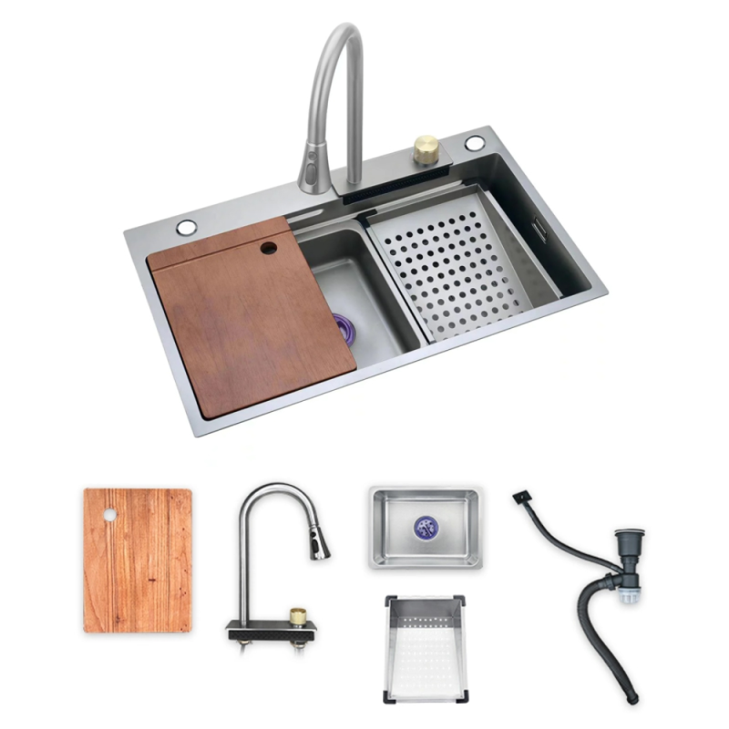 - Đi kèm là bộ phụ kiện đầy đủ gồm siphon, bộ xả, rổ, thớt và thau – hỗ trợ tối ưu cho nhu cầu sử dụng hằng ngày, đồng thời tiết kiệm chi phí lắp đặt thêm.