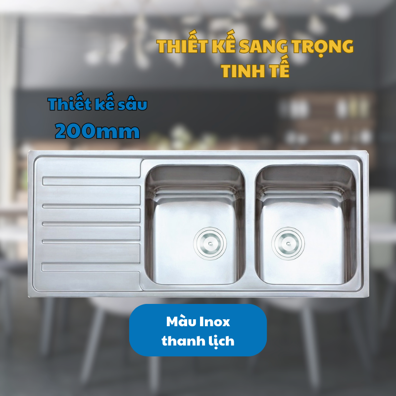 - Sở hữu kích thước 1160mm, chậu được bố trí hai hố cân kết hợp cùng bàn chờ rộng 400mm tích hợp rãnh thoát nước, tạo nên khu vực thao tác lý tưởng khi sơ chế và rửa thực phẩm. Với phiên bản bàn trái, sản phẩm phù hợp với cách bố trí bếp có hố rửa ở bên phải – giúp thao tác rửa trở nên tự nhiên, thuận tay, tăng hiệu suất sử dụng trong quá trình nấu nướng.
