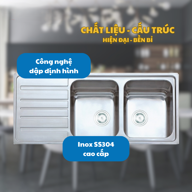 Sản phẩm có hai phiên bản bàn trái và bàn phải, trong đó mã KS11650 1D bàn trái phù hợp cho những không gian bếp có vị trí rửa tay thuận trái, đảm bảo thao tác thuận tiện và tối ưu hóa công năng sử dụng theo thói quen từng gia đình. - Thiết kế 2 hố cân đối, tăng hiệu quả sử dụng