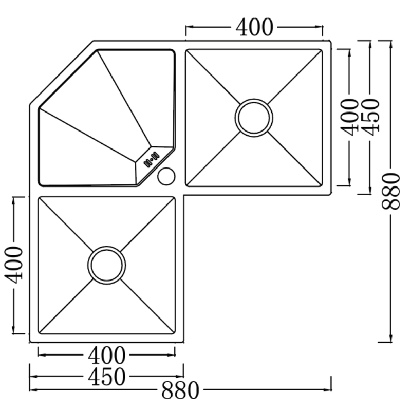 - Thiết kế 2 hố góc tiện lợi, phù hợp cho căn bếp nhỏ, giúp tiết kiệm diện tích hiệu quả.