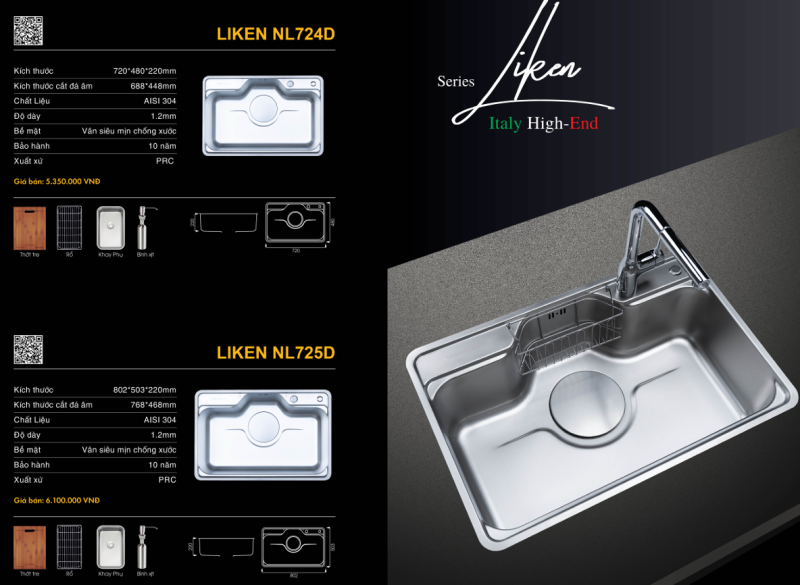 - Nếu bạn đang tìm kiếm một chậu rửa bát vừa đẹp mắt vừa bền bỉ cho căn bếp hiện đại, NoBiNox LIKEN NL725D chắc chắn sẽ không làm bạn thất vọng. Chậu được làm từ inox 304 chất lượng cao, dày 1.2mm, mang lại sự chắc chắn và tuổi thọ lâu dài. Đặc biệt, bề mặt vân siêu mịn không chỉ tăng tính thẩm mỹ mà còn giúp chống trầy xước và dấu vân tay hiệu quả.