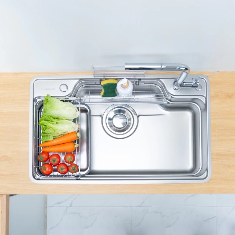 - Điểm cộng lớn của NL792D là thiết kế gờ hạ bậc thông minh cùng lòng chậu sâu, mang đến trải nghiệm sử dụng tiện nghi, thoải mái hơn hẳn so với các mẫu thông thường. Bộ phụ kiện đi kèm đồng bộ, tối ưu cho mọi thao tác trong bếp, từ rửa rau củ, đến sơ chế thực phẩm.