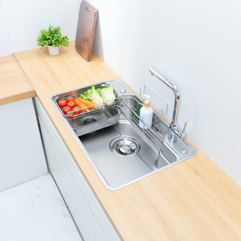 - Thiết kế gờ hạ bậc tiện dụng: Cho phép đặt rổ, thớt hoặc khay mà không chiếm diện tích – tăng khả năng xử lý đa nhiệm trong bếp.