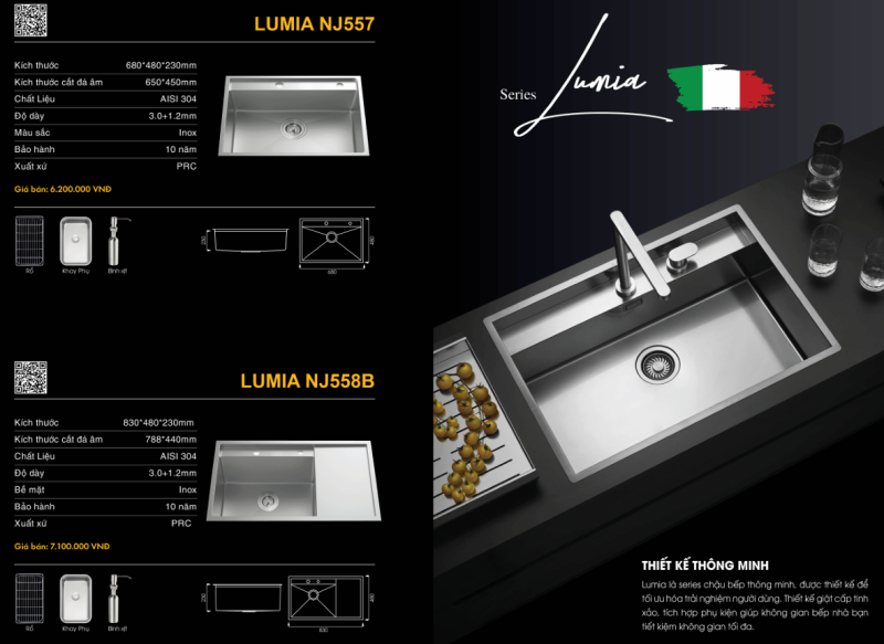 THÔNG SỐ KỸ THUẬT Chậu rửa bát NoBiNox LUMIA NJ557