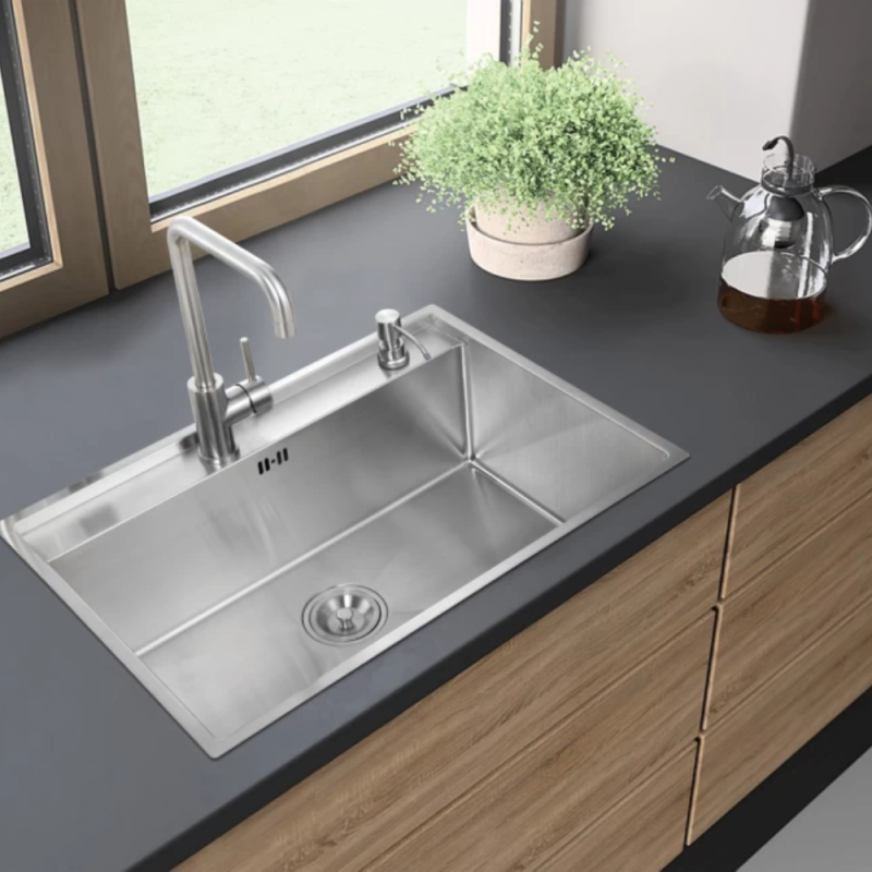 - Sản phẩm được làm từ inox 304 cao cấp, mang lại độ bền cao, khả năng chống ăn mòn và giữ được vẻ sáng bóng lâu dài. Độ dày chậu vừa phải giúp tăng độ cứng cáp và khả năng chịu va đập trong quá trình sử dụng. Đặc biệt, tính năng chống thấm ngược và giảm tiếng ồn từ lớp sơn và cao su mặt sau là điểm cộng giúp nâng cao trải nghiệm người dùng.
