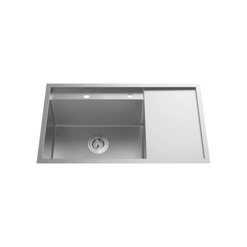 - Chậu được làm từ inox AISI 304, với lớp hoàn thiện bề mặt xước mịn vừa tăng tính thẩm mỹ vừa giúp vệ sinh dễ dàng, đảm bảo chậu luôn sáng bóng như mới. Độ dày thân và viền chậu được gia tăng để tăng khả năng chịu lực và chống biến dạng, đồng thời giảm thiểu tiếng ồn khi rửa bát.