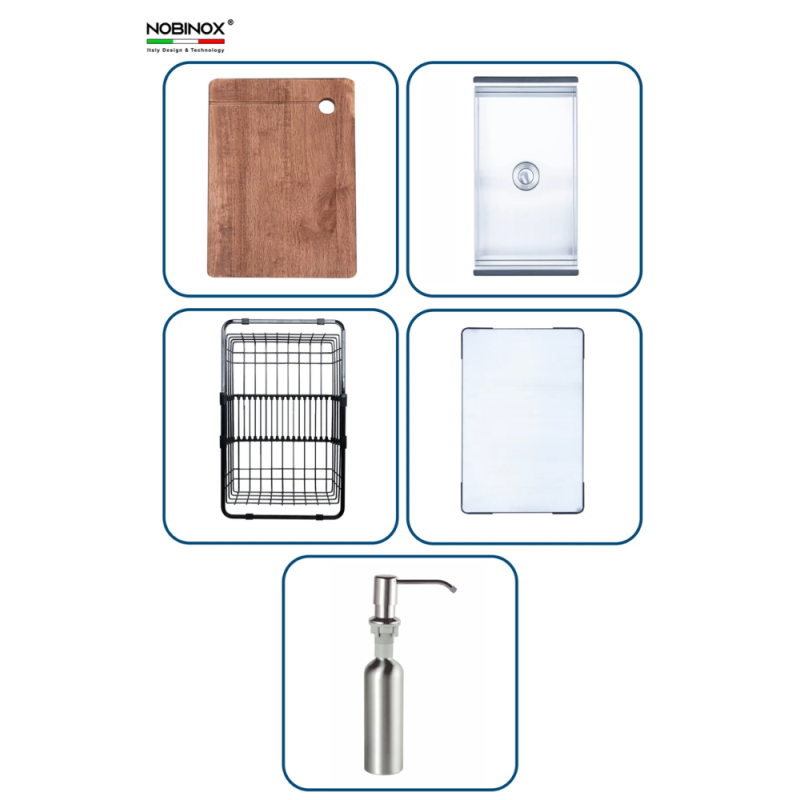- Nếu bạn đang tìm kiếm một mẫu chậu rửa bát sang trọng, bền bỉ và tích hợp nhiều tính năng thông minh, NoBiNox RAZIA NJ575 chính là lựa chọn lý tưởng. Với thiết kế 2 hố lệch kết hợp bàn chờ rộng rãi, sản phẩm giúp tối ưu không gian bếp và mang đến trải nghiệm sử dụng cực kỳ linh hoạt.