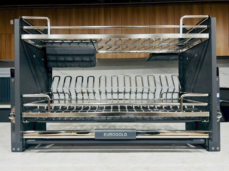 - Eurogold EPO9380LX được trang bị hệ ray trượt giảm chấn êm ái, cho chuyển động nâng hạ mượt mà và ổn định. Ray chịu tải lớn giúp giá bát vận hành bền bỉ ngay cả khi chứa nhiều bát đĩa. Nhờ đó, người dùng luôn cảm nhận được sự chắc chắn và yên tâm khi sử dụng hằng ngày.