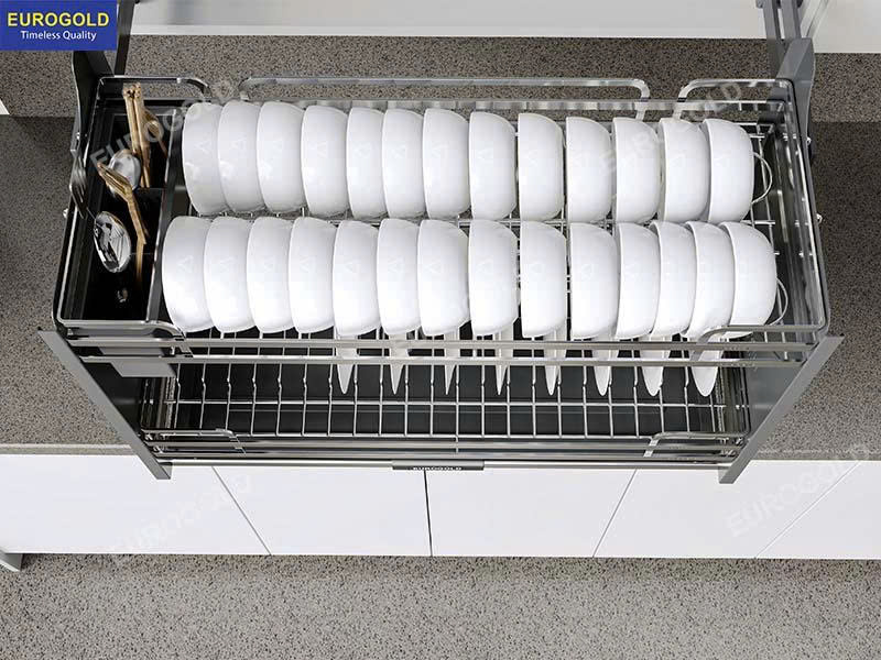 Giá bát đĩa Eurogold EVI960LG được thiết kế thông minh, tận dụng tối đa chiều rộng tủ 600mm, giúp sắp xếp bát đĩa gọn gàng và khoa học. Cơ cấu di động linh hoạt hỗ trợ thao tác lấy – cất đồ dùng nhanh chóng. Nhờ đó, không gian bếp luôn ngăn nắp và tiện nghi hơn trong quá trình sử dụng. - Thiết kế gọn gàng, hiện đại