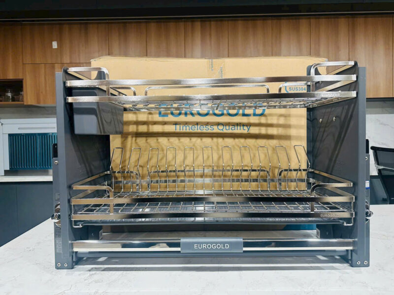 Eurogold EVI970LG được thiết kế dạng di động thông minh, cho phép kéo ra – đẩy vào nhẹ nhàng khi sử dụng. Sản phẩm phù hợp lắp đặt cho khoang tủ rộng 700mm, giúp tận dụng tối đa không gian tủ dưới. Nhờ đó, khu vực lưu trữ bát đĩa luôn gọn gàng và tiện nghi hơn. - Nan dẹt inox Oval 304 – Chắc chắn, bền bỉ