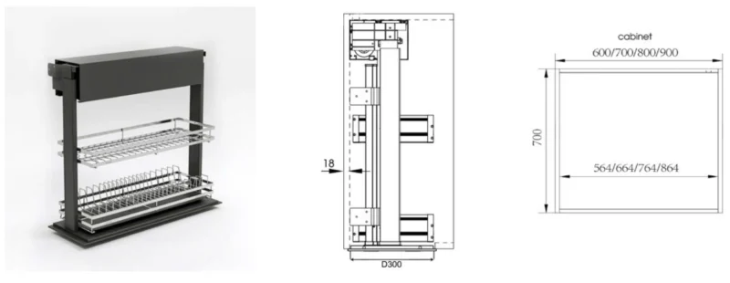 Giá nâng hạ điện Eurogold ESL9890 được thiết kế chuyên biệt cho tủ bếp trên rộng 900mm, phù hợp với các không gian bếp lớn, cao cấp. Kiểu dáng thanh thoát, hiện đại giúp tổng thể tủ bếp trở nên gọn gàng, tinh tế và nâng tầm thẩm mỹ rõ rệt.
