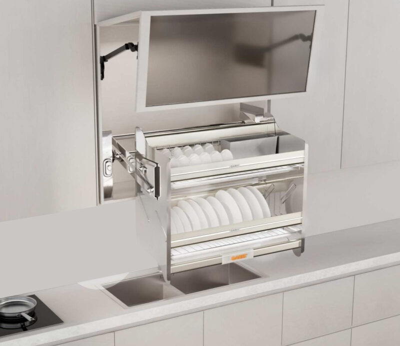 - Giá bát đĩa nâng hạ Garis GL06.90AG là lựa chọn phù hợp cho những gia đình mong muốn một giải pháp lưu trữ bát đĩa hiện đại, gọn gàng và dễ sử dụng trong không gian bếp