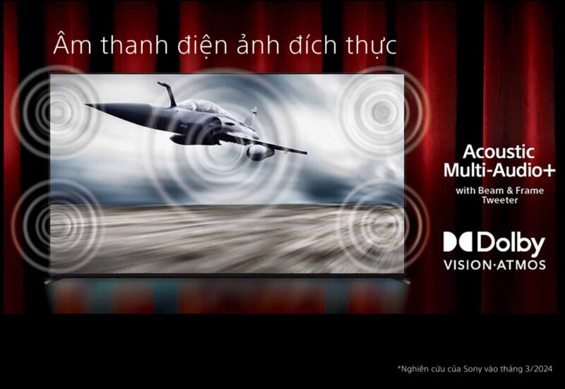 Hệ thống loa với tweeter nằm trên khung viền tạo cảm giác âm phát ra đúng vị trí trong phim. Công nghệ 3D Surround Upscaling và Dolby Atmos tái tạo âm vòm đa chiều đầy sống động. Kết hợp với loa thanh Sony sẽ mở khóa hiệu ứng 360 Spatial Sound Mapping cho trải nghiệm rạp phim tại gia