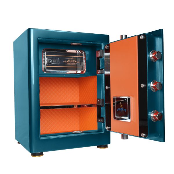 Két sắt Liberty LB50S Special Edition Xanh Cổ Vịt gây ấn tượng với màu sắc độc đáo, mang phong cách sang trọng và hiện đại cho không gian sống. Bên trong két được bọc da thủ công cao cấp với từng đường may tinh xảo, tạo cảm giác chỉn chu và đẳng cấp khi sử dụng. Không chỉ bảo vệ tài sản, sản phẩm còn là món nội thất cao cấp thể hiện gu thẩm mỹ tinh tế của gia chủ. - Bảo mật tuyệt đối với công nghệ vân tay hiện đại