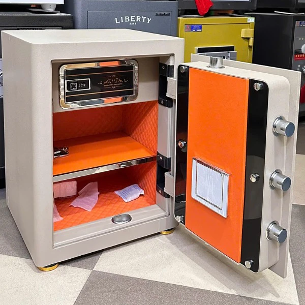 - Két sắt thông minh Liberty LB58S Vàng Cát sở hữu thiết kế hiện đại với tông màu sang trọng, dễ dàng hòa hợp trong mọi không gian nội thất. Vỏ két được làm từ thép đúc nguyên khối, bản lề âm và chốt khóa dày tạo nên cảm giác chắc chắn, an toàn ngay từ cái nhìn đầu tiên. Kích thước gọn gàng giúp sản phẩm dễ bố trí tại phòng khách, phòng ngủ hoặc văn phòng nhỏ, đồng thời gam màu vàng cát mang lại vẻ tinh tế, nổi bật và đậm chất cao cấp.