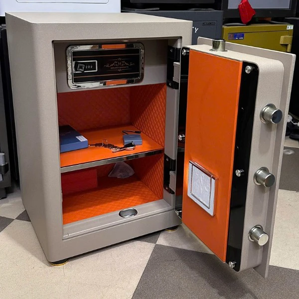 Thân két được chế tạo từ thép nguyên khối hai lớp, kết hợp lớp cách nhiệt ở giữa, tạo nên khả năng chịu lực và chống khoan cắt vượt trội. Cánh cửa dày cùng chốt khóa đặc chế gia cố chắc chắn giúp tăng khả năng bảo vệ két trước tác động mạnh từ bên ngoài. Cấu trúc này không chỉ nâng cao độ an toàn mà còn đảm bảo độ bền lâu dài trong quá trình sử dụng. - Khả năng chống cháy và bảo vệ tài sản tối ưu