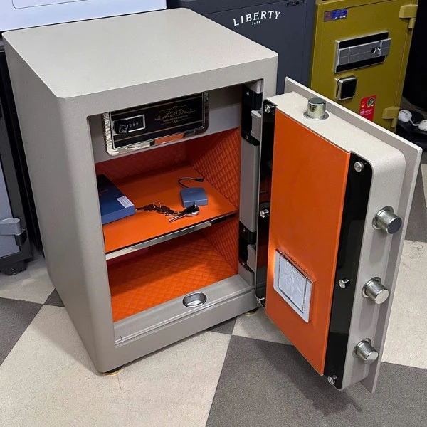 Két sắt thông minh Liberty LB68S được trang bị nhiều hình thức mở khóa gồm vân tay, mã số điện tử, khóa cơ khẩn cấp và kết nối ứng dụng điện thoại. Sự kết hợp này mang đến tính linh hoạt tối đa, giúp người dùng dễ dàng lựa chọn phương thức phù hợp trong từng tình huống. Đồng thời, hệ thống bảo mật nhiều lớp giúp tăng độ an toàn, giảm thiểu nguy cơ bị xâm nhập trái phép. - Cấu trúc thép hai lớp kiên cố, chống phá hiệu quả
