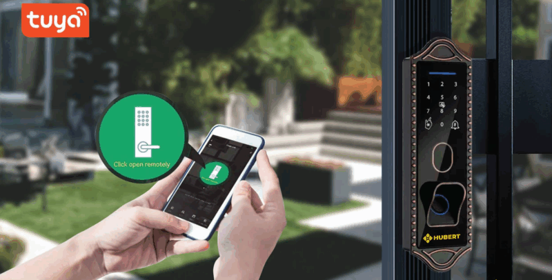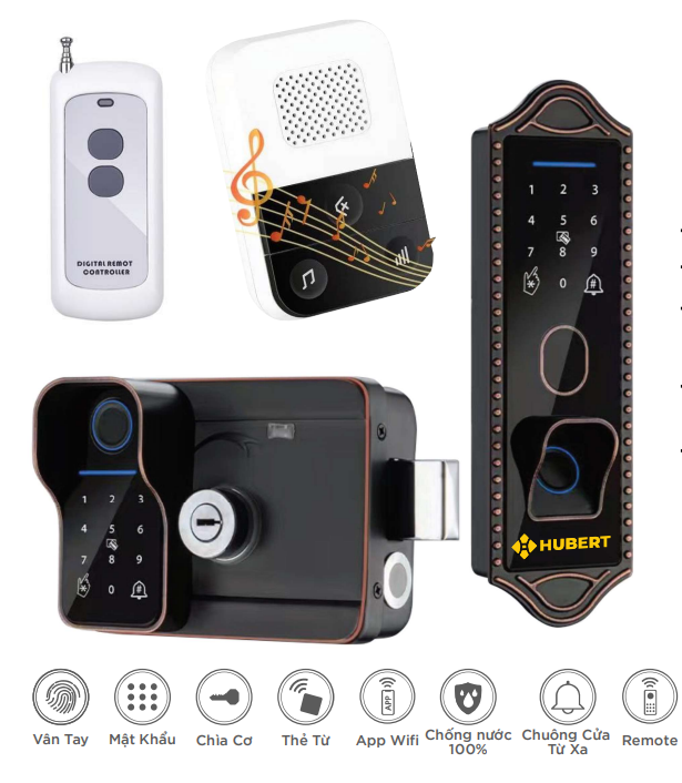 • Tính năng: vân tay, mật mã, thẻ từ, chìa cơ, remote và App TUYA