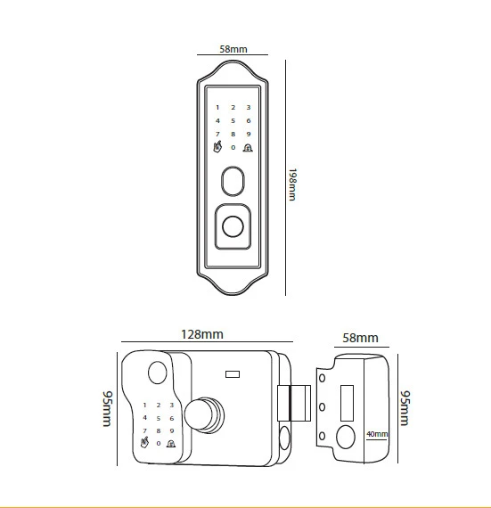 • Kích thước mặt ngoài: 198mm x 58mm