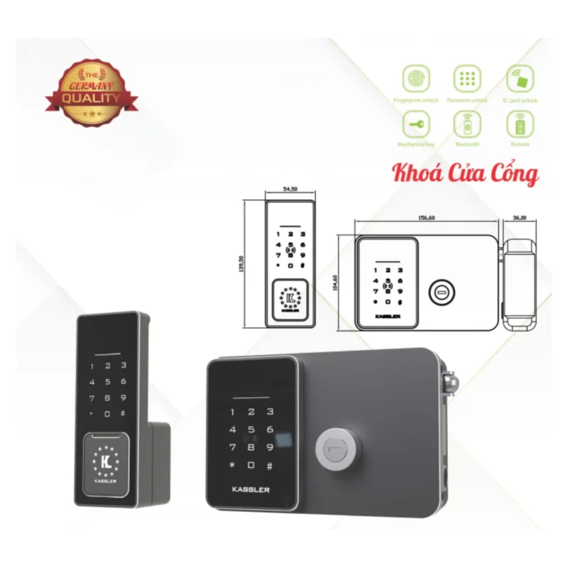 - Nhìn chung, Kassler KL-579 CNC Silver Grey App là lựa chọn hoàn hảo cho những ai tìm kiếm một mẫu khóa cửa cổng vừa bền bỉ, vừa an toàn lại đầy đủ tiện ích thông minh. Đây là sự kết hợp hài hòa giữa thiết kế cao cấp, khả năng chống nước tuyệt đối và công nghệ hiện đại, mang đến trải nghiệm sử dụng tiện nghi và bảo mật tối đa cho người dùng.