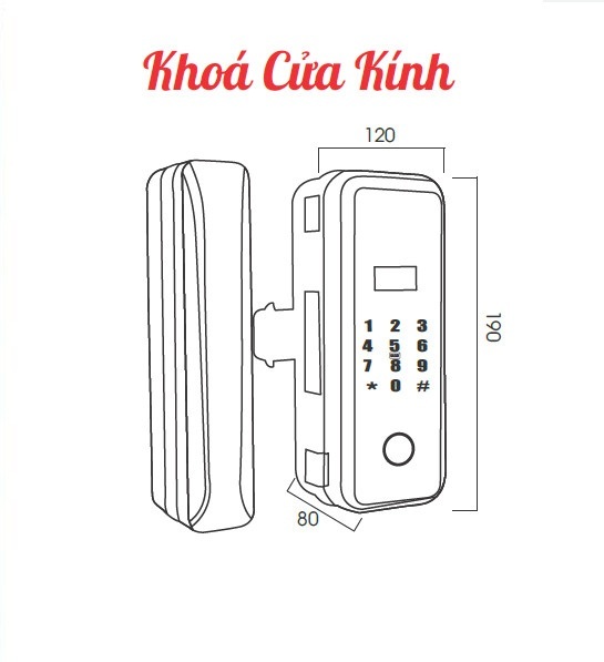 - Kích thước thân khóa ngoài: R 120 x C 190 x D 80 mm