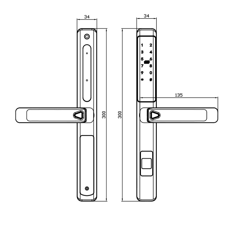 - Kích thước thân khóa ngoài: R 34 X C 300 x D 25mm