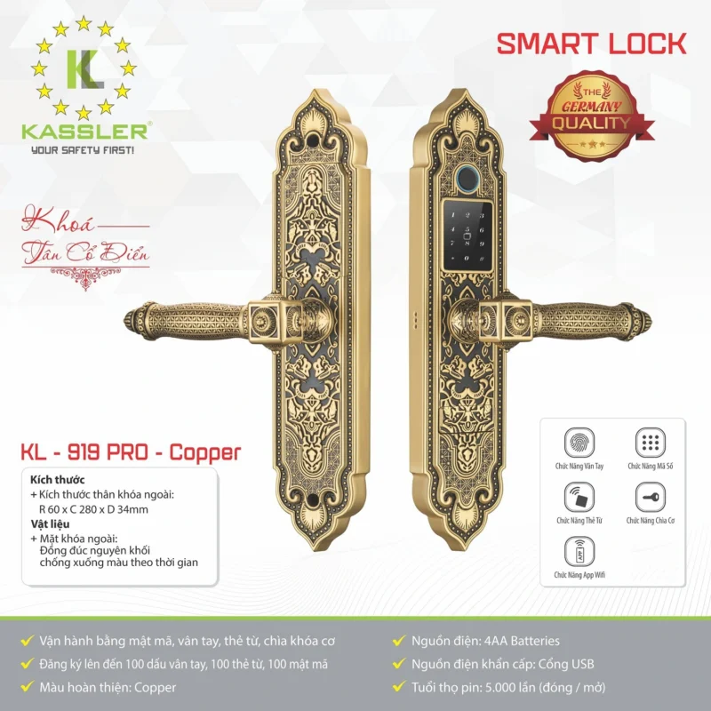 ĐẶC ĐIỂM NỔI BẬT KHOÁ ĐẠI SẢNH KASSLER KL-919 PRO COPPER