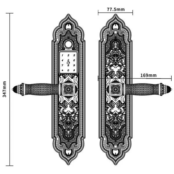 - Kích thước thân khóa ngoài: R 77.5 x C 347 x D 52mm