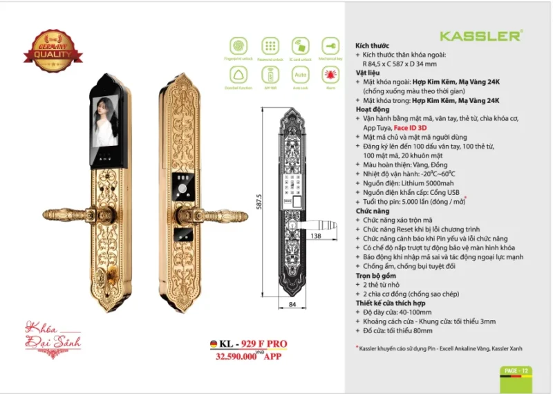 ĐẶC ĐIỂM NỔI BẬT KHOÁ ĐẠI SẢNH KASSLER KL-929 F PRO