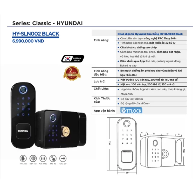 THÔNG SỐ KỸ THUẬT KHÓA ĐIỆN TỬ CỬA CỔNG HYUNDAI HY-SLN002 BLACK