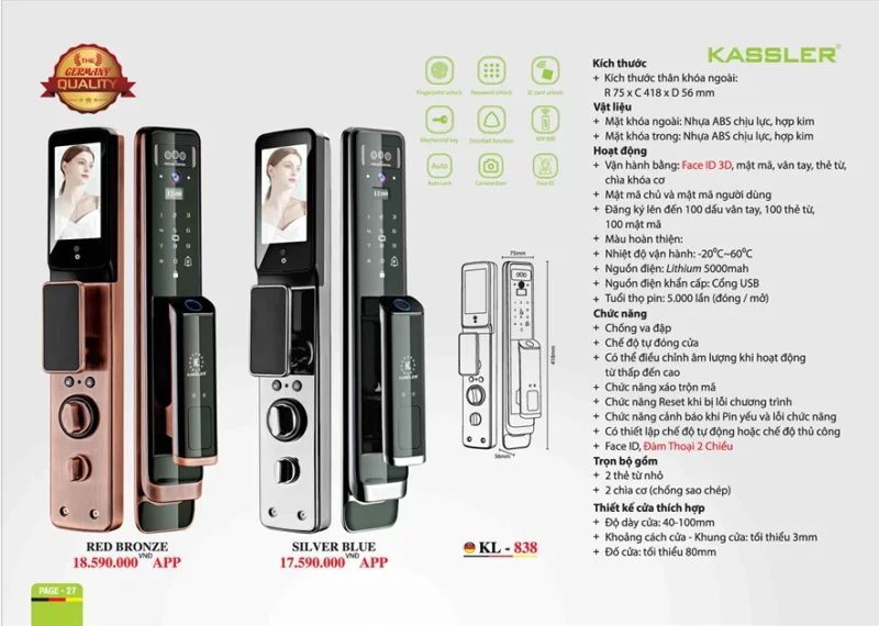 Khóa điện tử Kassler KL-838 Red Bronze App
