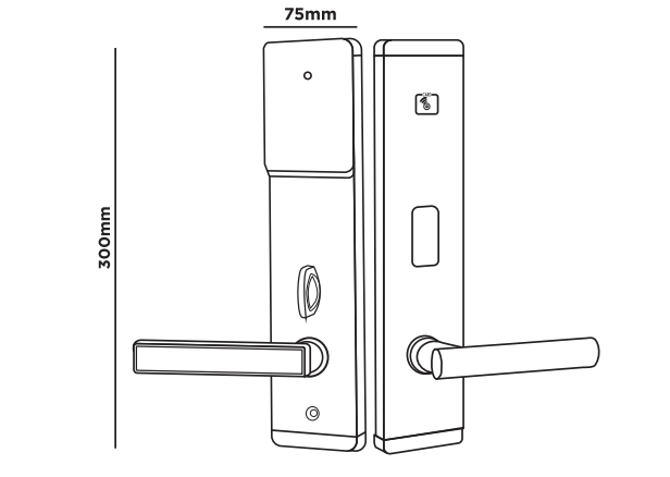 - Phương thức mở khóa: Thẻ từ (tần số 125KHz), chìa khóa cơ.