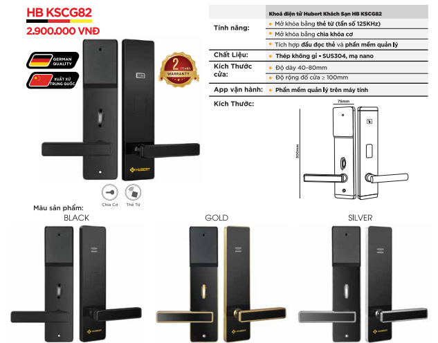 KHÓA KHÁCH SẠN HUBERT HB KSCG82 SILVER
