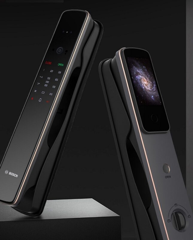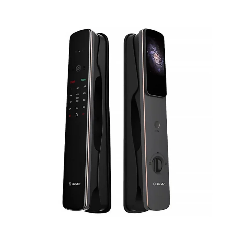 - Sản phẩm khoá thông minh Bosch EL800VF (phiên bản EU APP) mang đến một thiết kế rất ấn tượng và hiện đại: thân khoá được chế tác từ hợp kim cao cấp với lớp phủ IML chống trầy xước và phai màu, mặt trước là màn hình kính cường lực tạo cảm giác sang trọng và ổn định. Gam màu chủ đạo (đen hoặc xám) cùng đường nét tinh giản giúp khoá dễ dàng hoà hợp với nhiều phong cách nội thất khác nhau — từ căn hộ hiện đại đến villa cao cấp. Vì vậy, phần “Thiết kế” của sản phẩm được đánh giá cao về cả tính thẩm mỹ và chất lượng vật liệu.