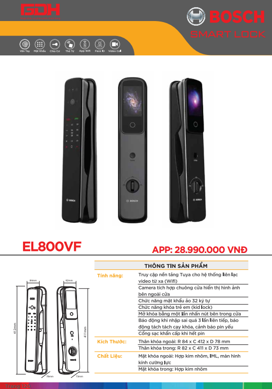 THÔNG SỐ KỸ THUẬT KHÓA VÂN TAY BOSCH EL800VF EU APP