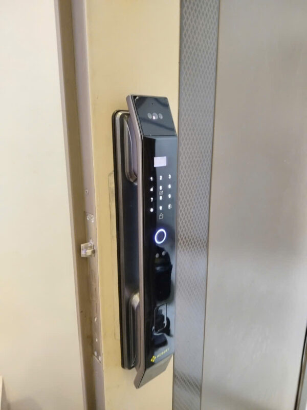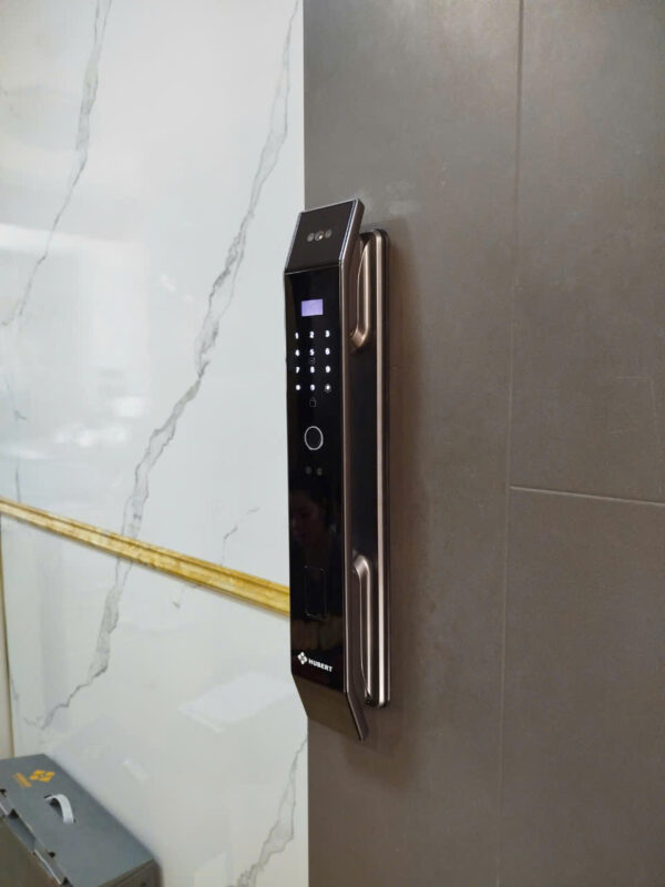 HÌNH ẢNH THỰC TẾ KHÓA VÂN TAY CỬA GỖ HUBERT HB CG25F BLACK