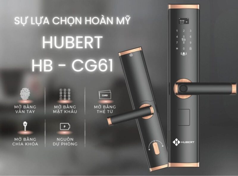 - Tổng kết lại, Hubert HB CG61 Copper là lựa chọn lý tưởng cho những ai tìm kiếm sự kết hợp giữa thẩm mỹ tinh tế, công nghệ tiên tiến và an toàn tuyệt đối. Sản phẩm không chỉ nâng tầm diện mạo cho cánh cửa gỗ mà còn mang lại trải nghiệm sử dụng thông minh, tiện lợi và bền bỉ theo thời gian.