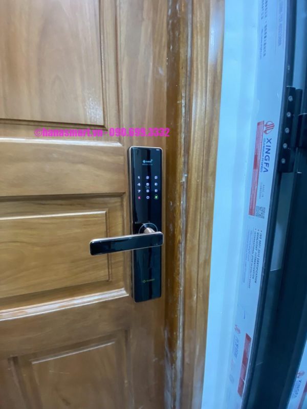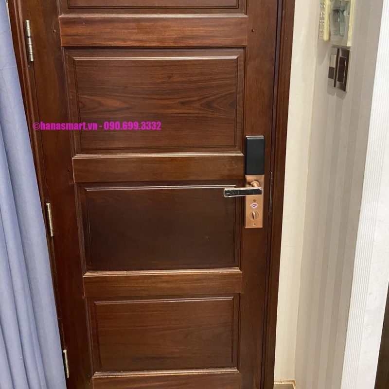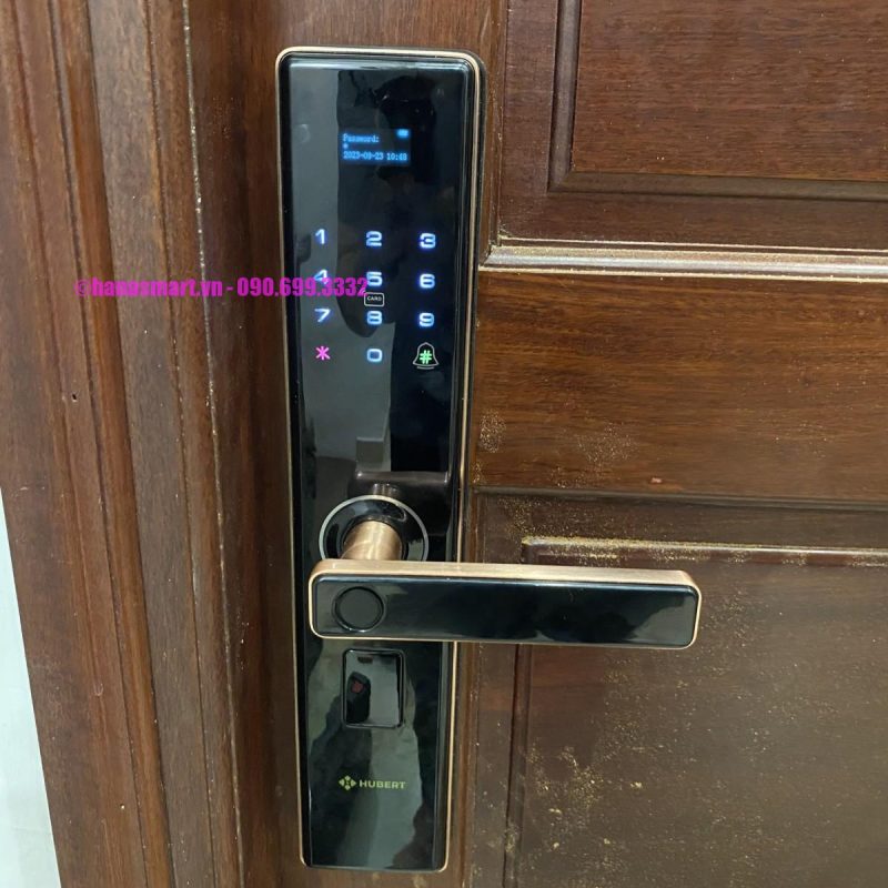 HÌNH ẢNH THỰC TẾ KHÓA VÂN TAY CỬA GỖ HUBERT HB CG62 NANO COPPER