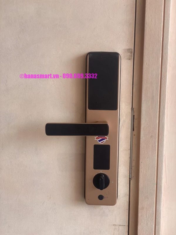 - Khóa vân tay cửa gỗ Hubert HB CG75 Rose Gold gây ấn tượng mạnh với thiết kế sang trọng mang sắc hồng vàng tinh tế, tạo điểm nhấn nổi bật cho không gian nội thất hiện đại. Thân khóa được chế tạo từ hợp kim nhôm bền chắc, phủ lớp sơn nhám tĩnh điện chống bám vân tay, giúp giữ được vẻ đẹp bền lâu trong quá trình sử dụng. Bên cạnh đó, sản phẩm được thiết kế chống nước hoàn toàn, kết hợp bo mạch chống ẩm, phù hợp lắp đặt cho nhiều vị trí cửa, kể cả những nơi thường xuyên chịu tác động từ thời tiết.