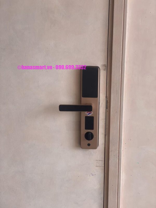 HÌNH ẢNH THỰC TẾ KHÓA VÂN TAY CỬA GỖ HUBERT HB CG75 ROSE GOLD