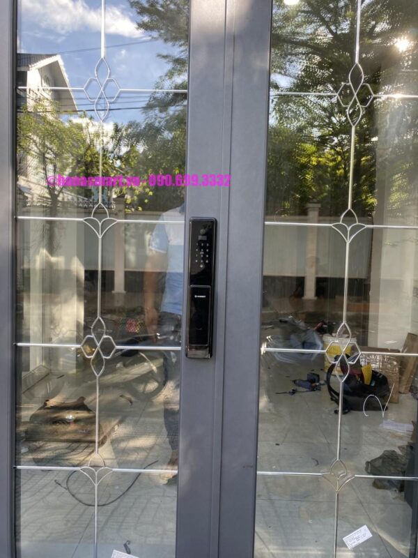HÌNH ẢNH THỰC TẾ KHÓA VÂN TAY CỬA GỖ HUBERT HB CG77 BLACK PEARL