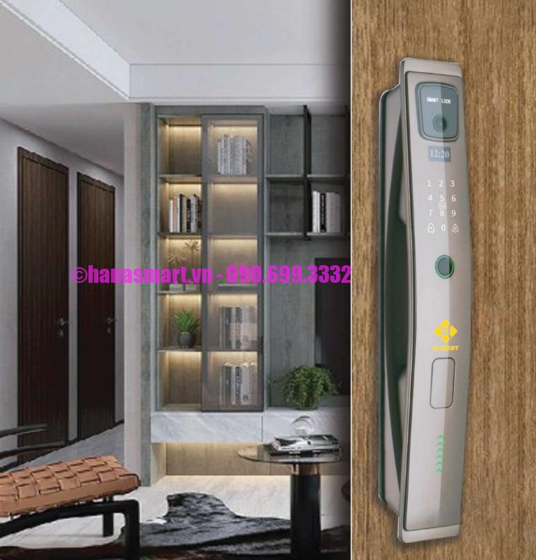 HÌNH ẢNH THỰC TẾ KHÓA VÂN TAY CỬA GỖ HUBERT HB CG79 NANO COFFEE