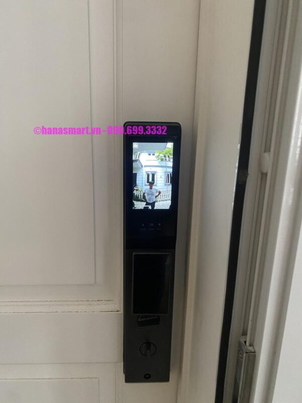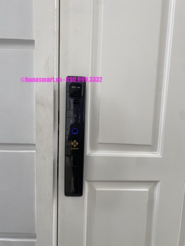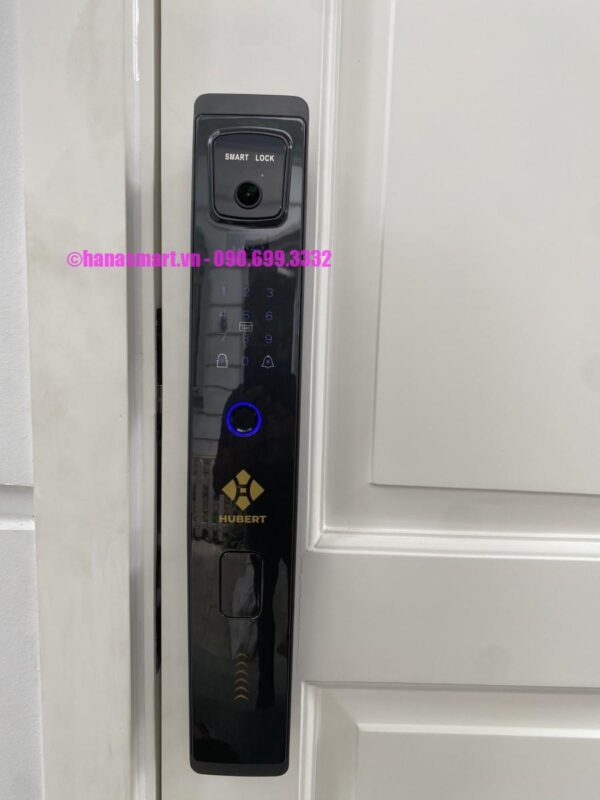 - Camera tích hợp chuông cửa – Quan sát an toàn hơn: Khóa HUBERT HB CG79 Nano Gray được trang bị camera tích hợp ngay trên thân khóa, cho phép hiển thị hình ảnh khách đứng trước cửa. Nhờ đó, người dùng có thể dễ dàng quan sát và nhận diện trước khi mở cửa, tăng cường mức độ an toàn. Đây là điểm cộng lớn so với các dòng khóa truyền thống, đặc biệt phù hợp cho cửa chính nhà phố hoặc căn hộ chung cư.